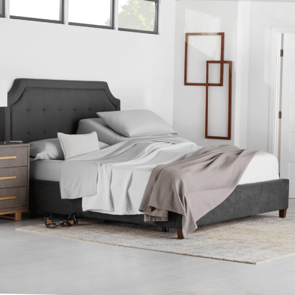 Once you climb into the Adjustable Base E455, you might never want to leave. The base, which has an elegantly upholstered frame, has true zero clearance—meaning that you can set it directly in any frame, including foundations, platform bases, slat beds, or the ground. Adjustable Base E455 comes equipped with ports to charge phones and other electronics easily.
